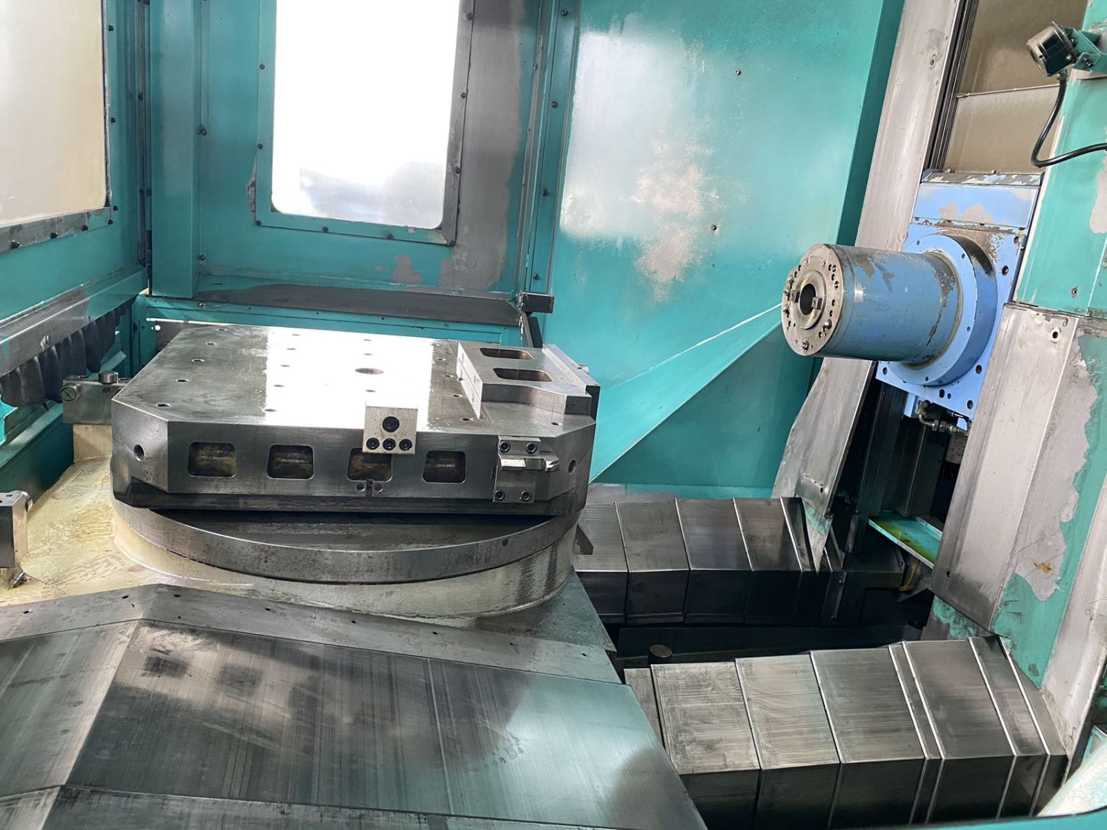系统:FANUC 18i-MB 工作台:800mm*800mm 行程:X1350mm*Y1150mm*Z1150mm 刀库:120把 BT50 主軸转速:6000rpm