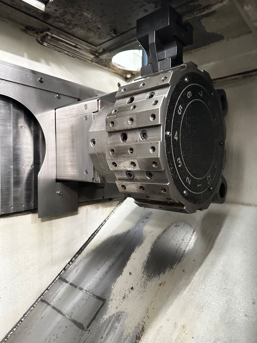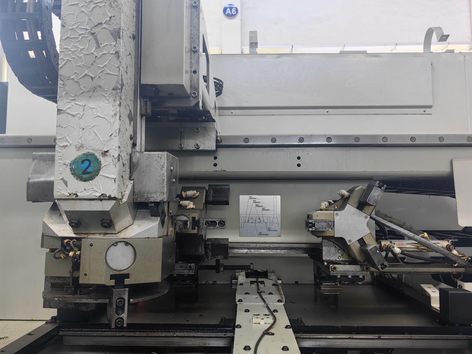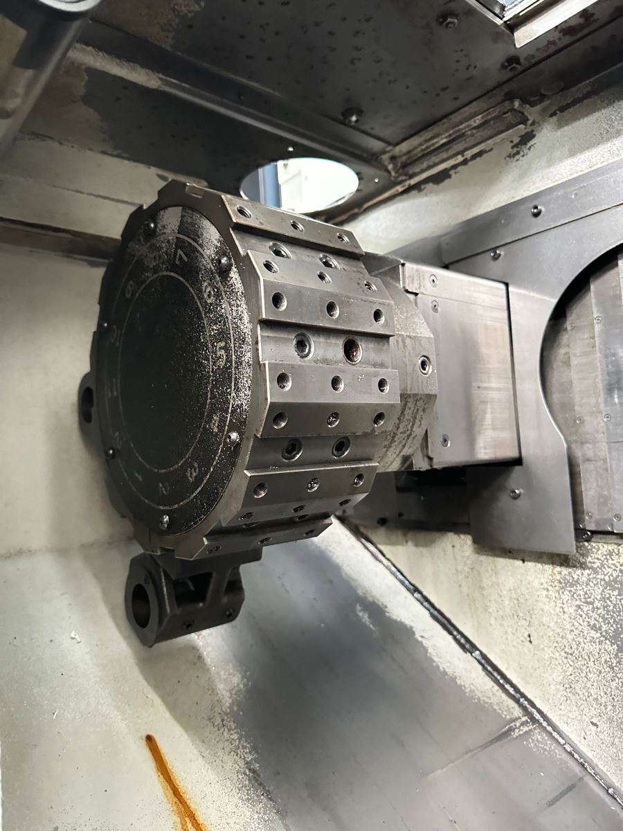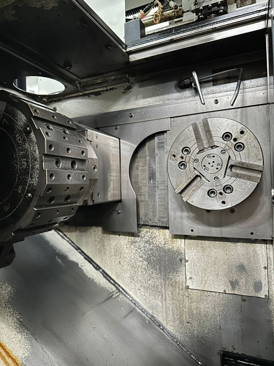 日本大隈双主轴双刀塔数控车床 系统:OKUMA OSP-P200LA 主轴转数:4500rpm 行程:X 150mm * Z 155mm 刀柄:25mm,镗杆柄直径:φ40 最大工件尺寸:φ150*80L 机械手自动装料