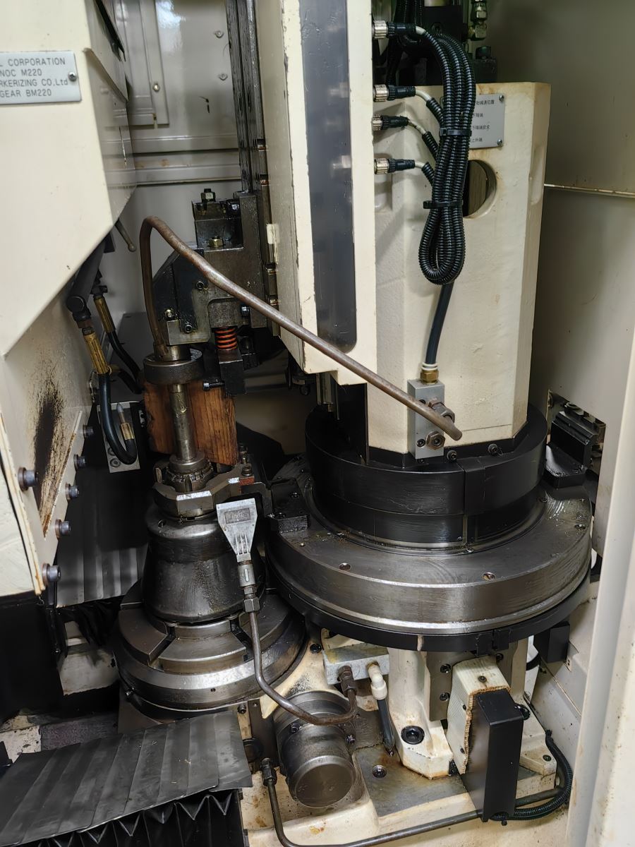 系统:FANUC 32i-MODEL A 外齿轮:150mm,内齿轮:60mm+刀具P.C.D 工件最大模数:4,最大齿宽:32 工作台直径:φ260mm 径向移动距离:-30~195