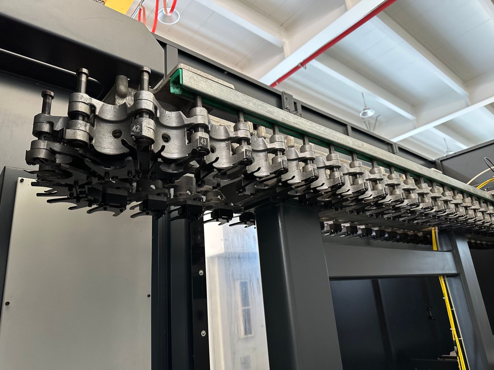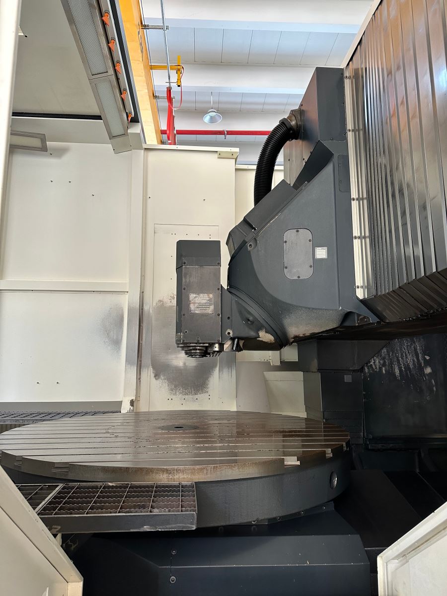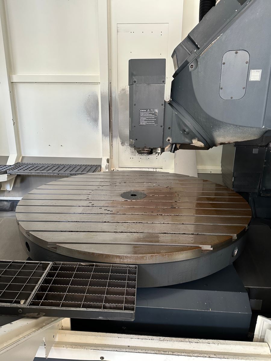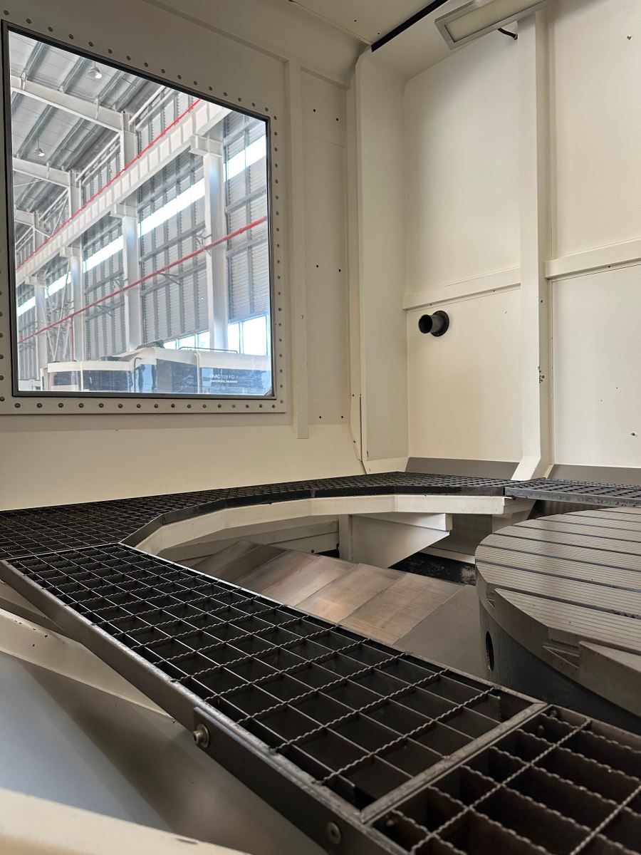 数控系统:M70 Späneförderer 行程:X轴1800mm*Y轴2100mm*Z轴1250mm C轴360° 主轴转速:18000rpm 主轴刀柄:HSK-63 工作台尺寸:φ1700 承重:8000KG 刀库容量:60把