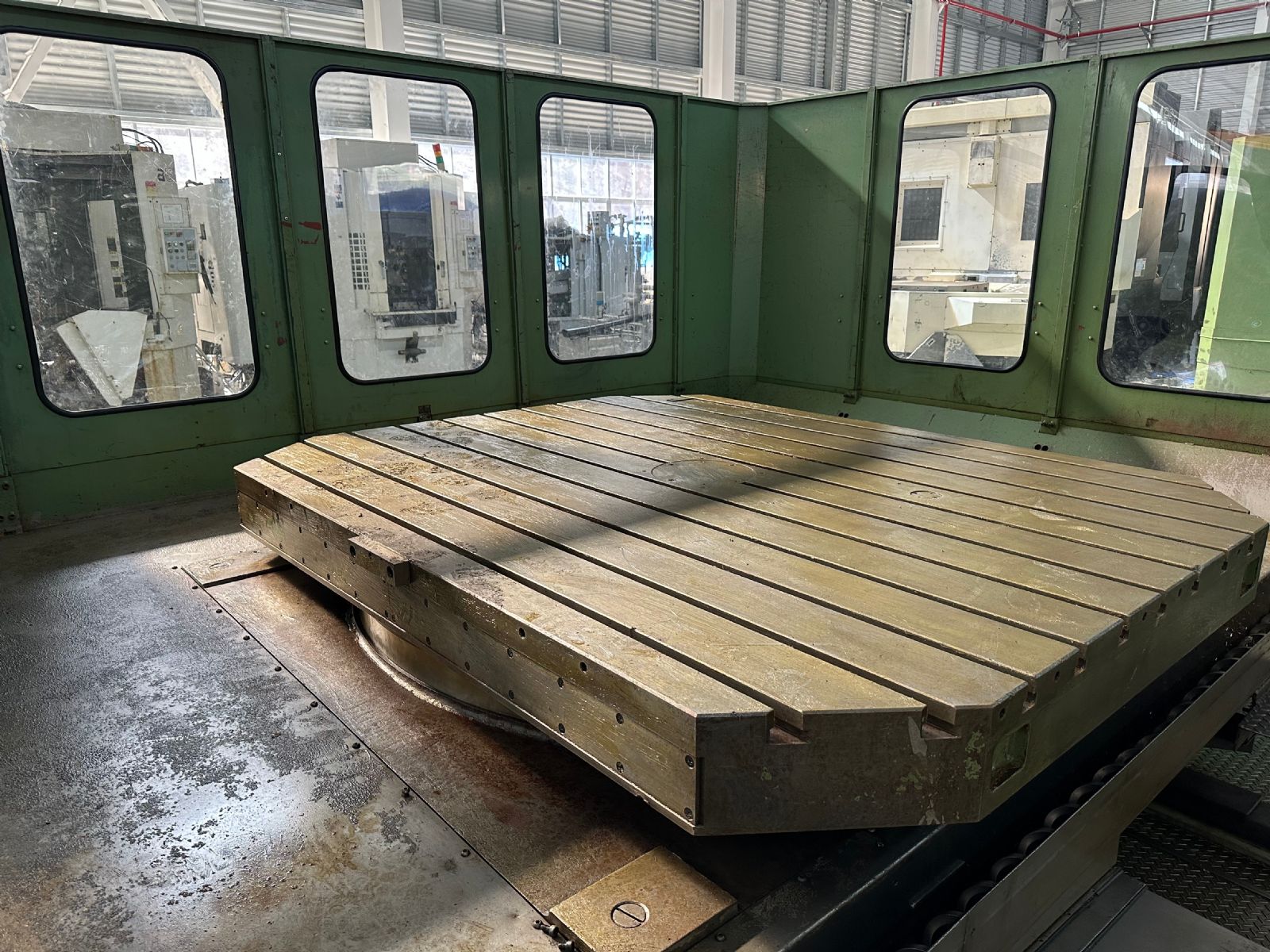 系统:TOSNUC 888 行程:X轴3000mm*Y轴2300mm*Z轴1600mm W轴:800mm 主轴直径:130mm 主轴转速:2500rpm 主轴刀柄:BT50 工作台尺寸:2200*1800 分度:万分之一度 工作台承重:10000KG 刀库容量:38把 带光栅尺全闭环控制 主轴中心出水