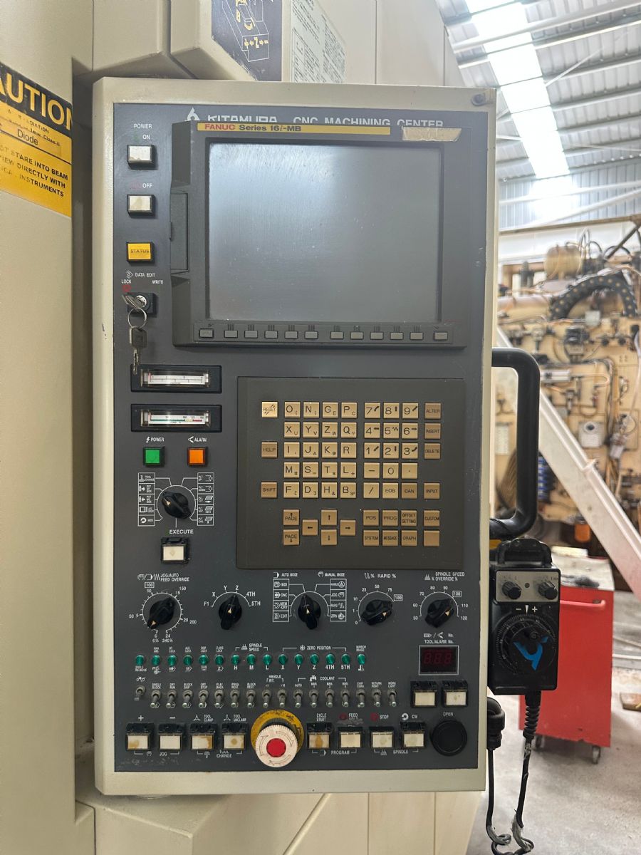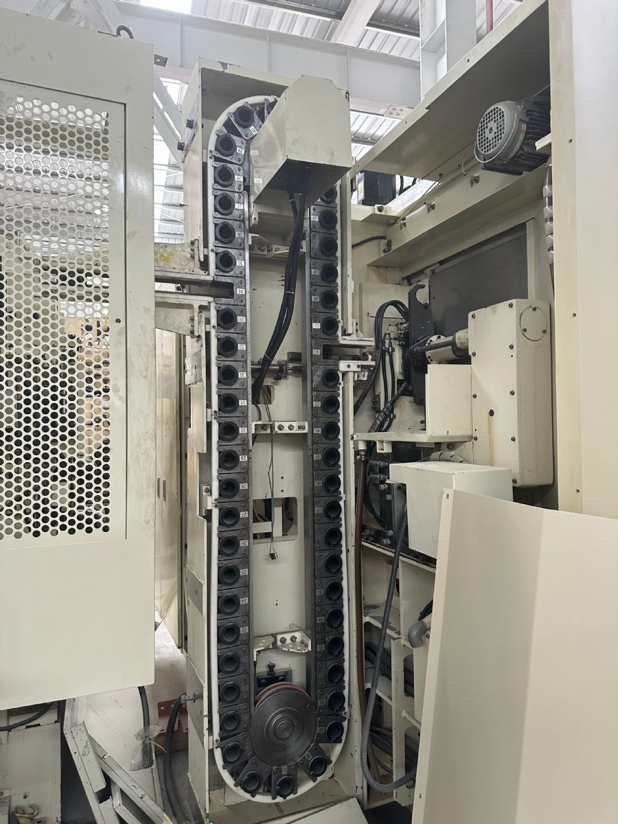 系统:FANUC 16i-MB 主轴转速:13000rpm 主轴刀柄:BT40 行程:X轴735mmxY轴610mmxZ轴610mm 交换式双工作台 工作台尺寸:400*400 工作台分度:0.001° 刀库容量:150把